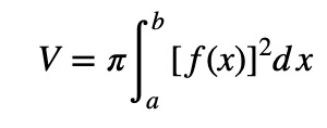 The formula for Volume by Integration (Revolved Around the x-axis):