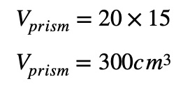 For a triangular prism with a base triangle area of 20 cm² and a height of 15 cm: