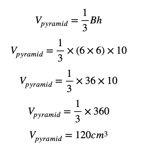 So, the volume of the pyramid is 120 cubic meters. This is how much space the pyramid occupies.