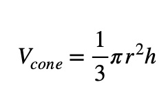 This formula works by having the base in the shape of a circle, which is represented by . Then, multiply it by the height and divide the lot by three because the cone gradually fades to a point.